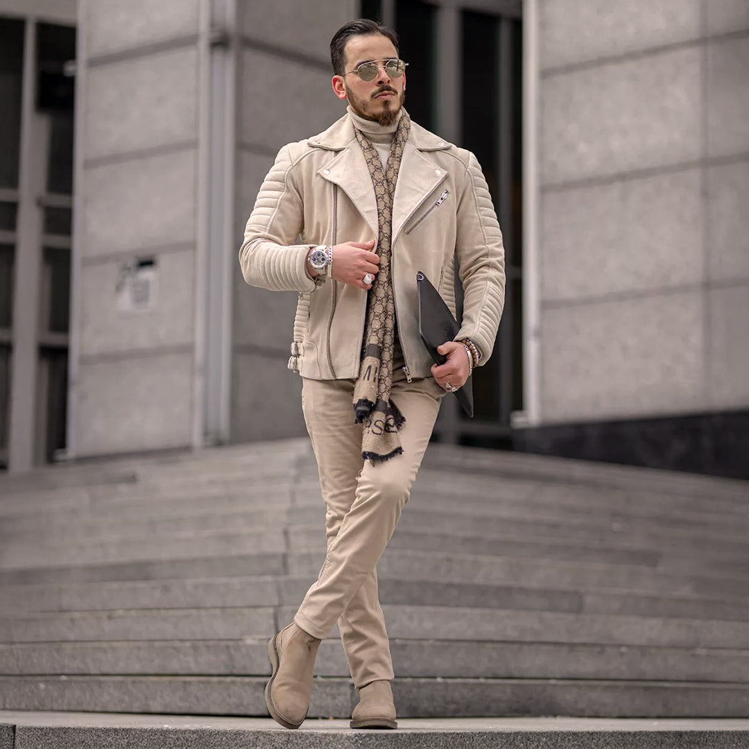 Every custom leather jacket begins with our finest leathers. Our core proposition is the finest quality leather that ranges from lambskin, sheepskin, and goatskin to buffalo hide and cowhide. Choose full grain for lasting durability, suede or nubuck for soft texture, or sheepskin and shearling for natural warmth. For unique looks, tie and dye, matte, glossy, or textured finishes add character, while aniline and semi-aniline highlight the natural grain. All leathers are hand-selected to ensure quality, comfort, and style.
