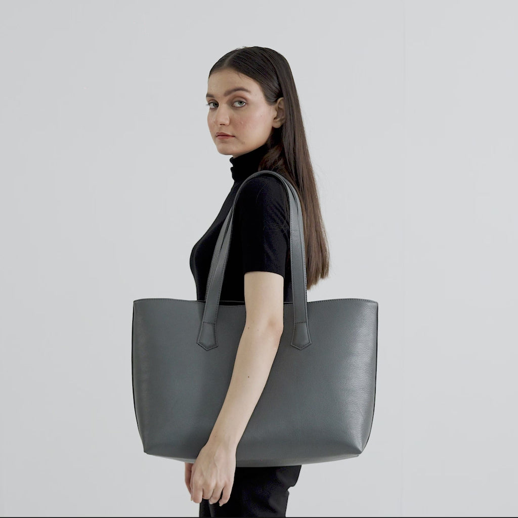 The Bianca Grey Leather Tote Bag