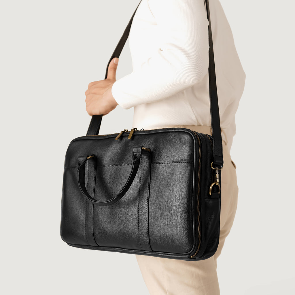 The Preston Black Leather Briefcase